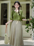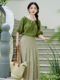 French Vintage Embroidered Dress(Top + Skirt 2Pcs Set)