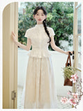 Oriental-Style Embroidered 2pcs Set(Top + Skirt )