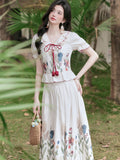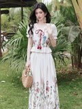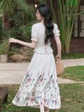 Retro Ruffle Print Top + Skirt 2Pcs Set