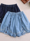 Embroidered Flowers Hem Double Layered Linen Skirt