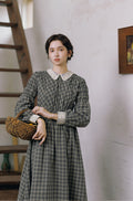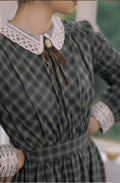 100% Cotton Vintage Plaid Dress (Brooch Included)