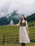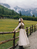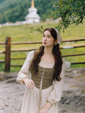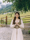 Farmcore Lace Up Vest + Dress + Headscarf 3pcs Set