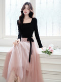 Velvet Lace Hem Evening Dress$59.99