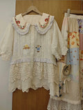 Short Sleeve Mori Kei Embroidered Shirt