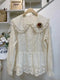 Quality Cotton 3D Flowers Lace Trim Blouse