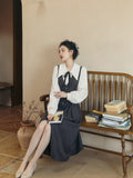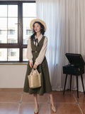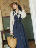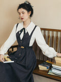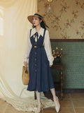 Vintage Blouse + V Neck Overall Dress 2pcs Set