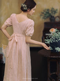 Pink Embroidered Period Drama Regency Era Dress