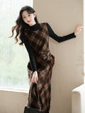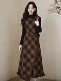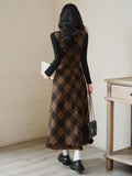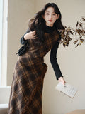 Vintage Ekoseli Tulum Elbise + Fildişi Üst 2'li Takım