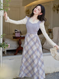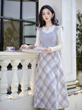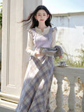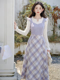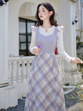 Vintage Ekoseli Tulum Elbise + Fildişi Üst 2'li Takım