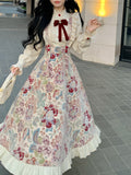 Vintage Fiyonklu Bluz + Jakarlı Önlük Etek